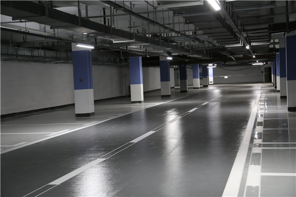 該工程為哈爾濱恒大集團(tuán)下屬項目的地下停車場地面施工。采用整體車位部分流展平涂施工工藝,車道部分采用桔皮紋施工工藝。該工藝環(huán)保,施工效果高端、大氣。